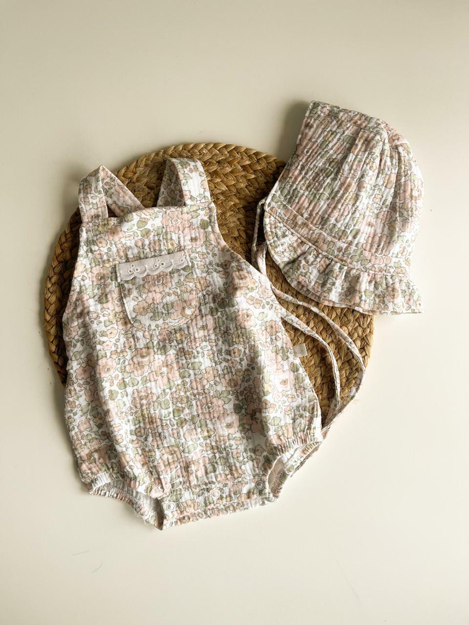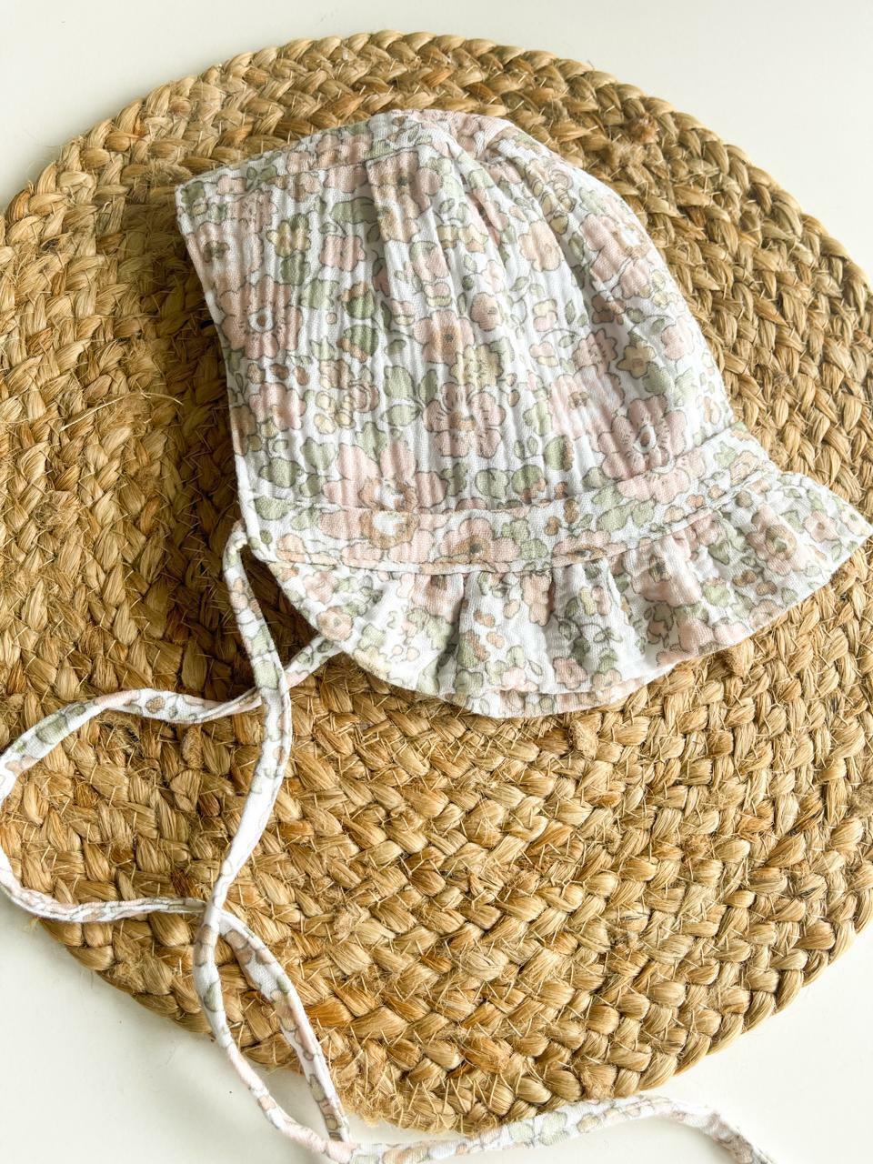 Gorrito tipo Ingalss de gasa con algodon en el interior, super lindo, ideal para combinar con el bombachon de la misma linea