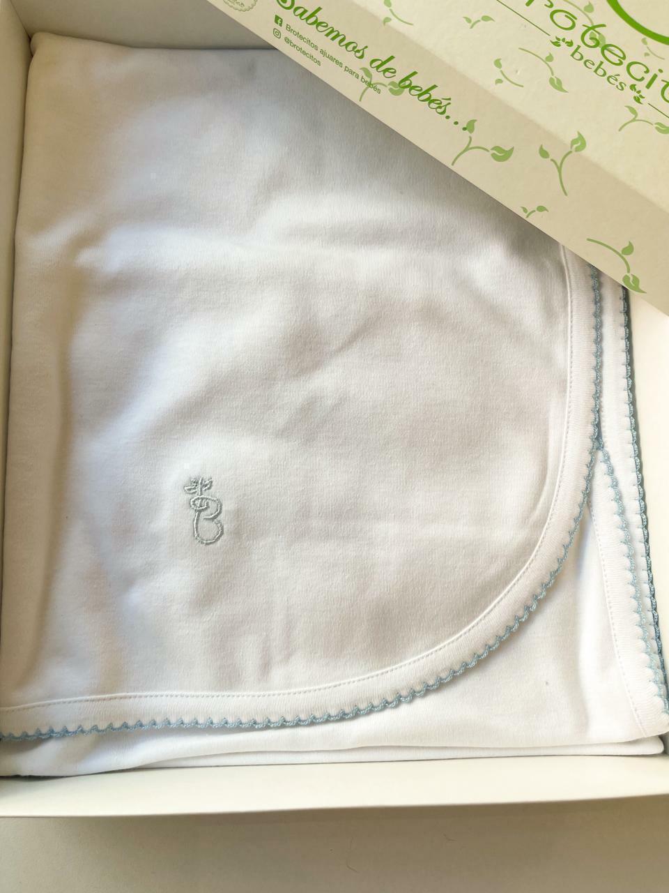 Manta de algodón con terminacion en picot, super linda y delicada, viene presentada en caja, ideal para regalito