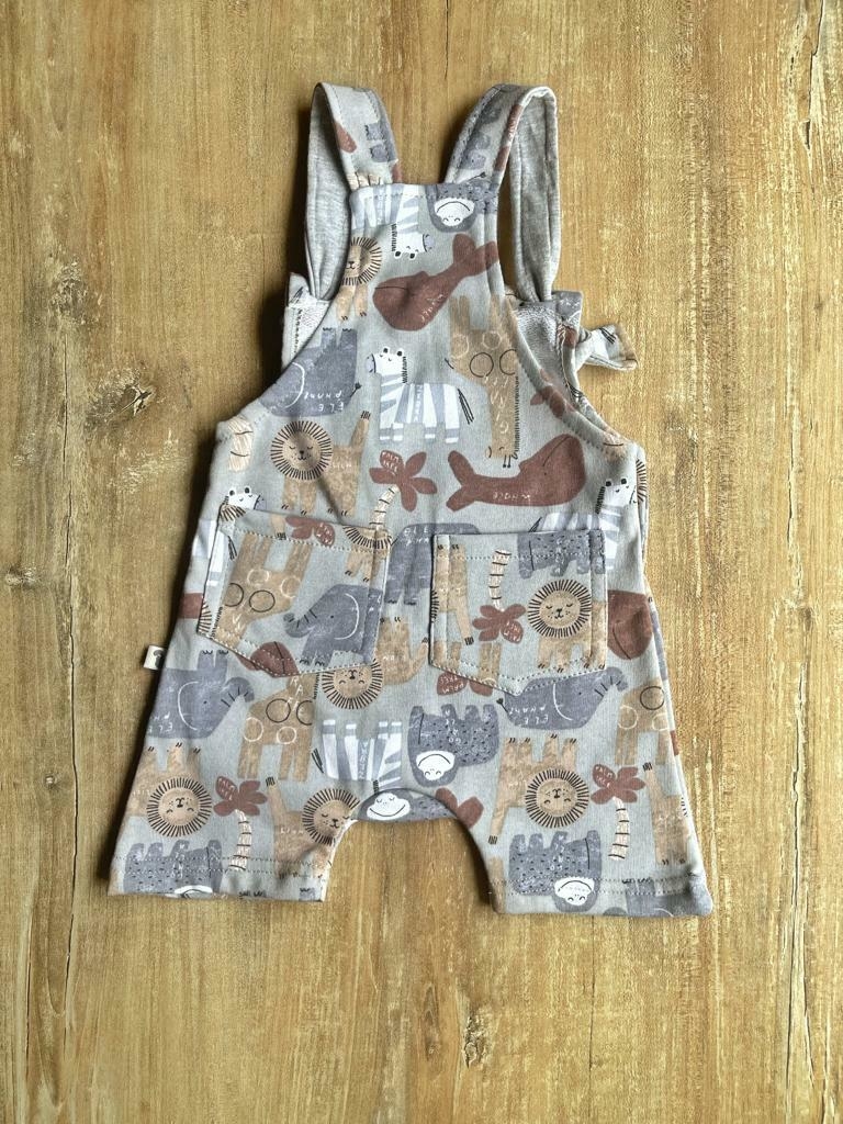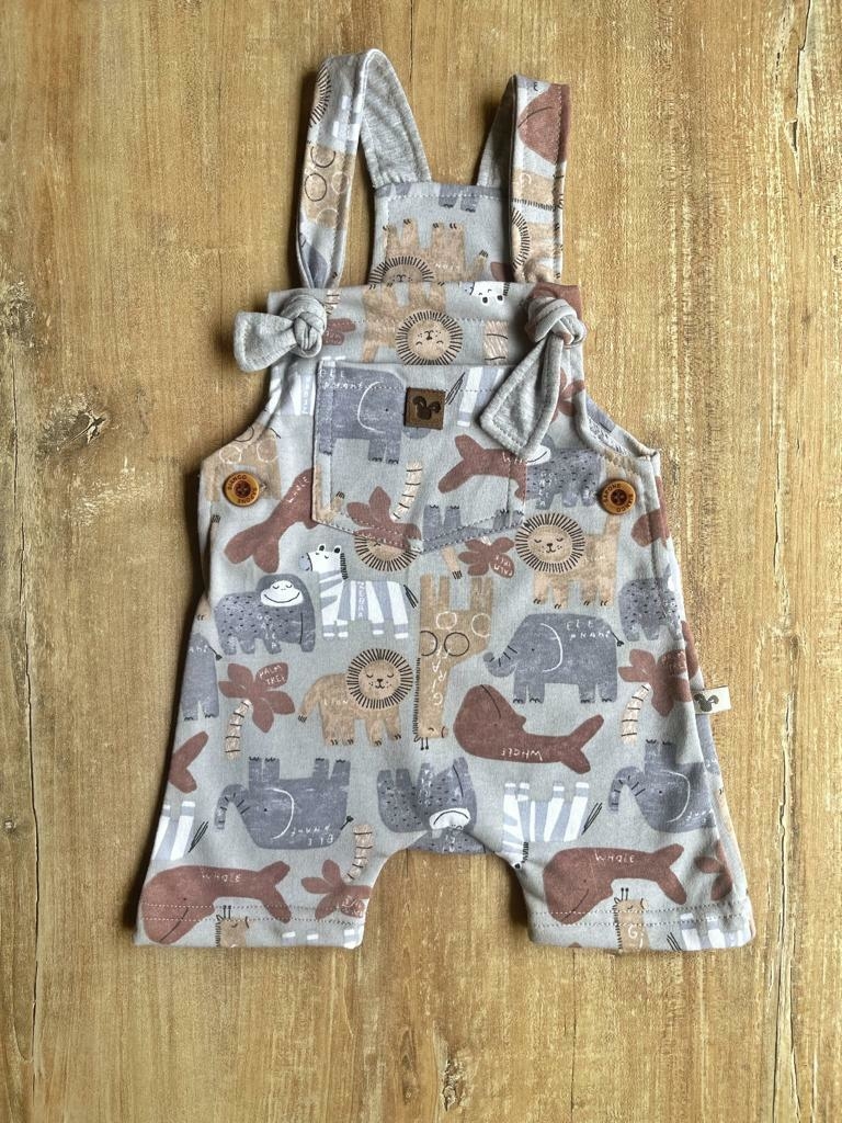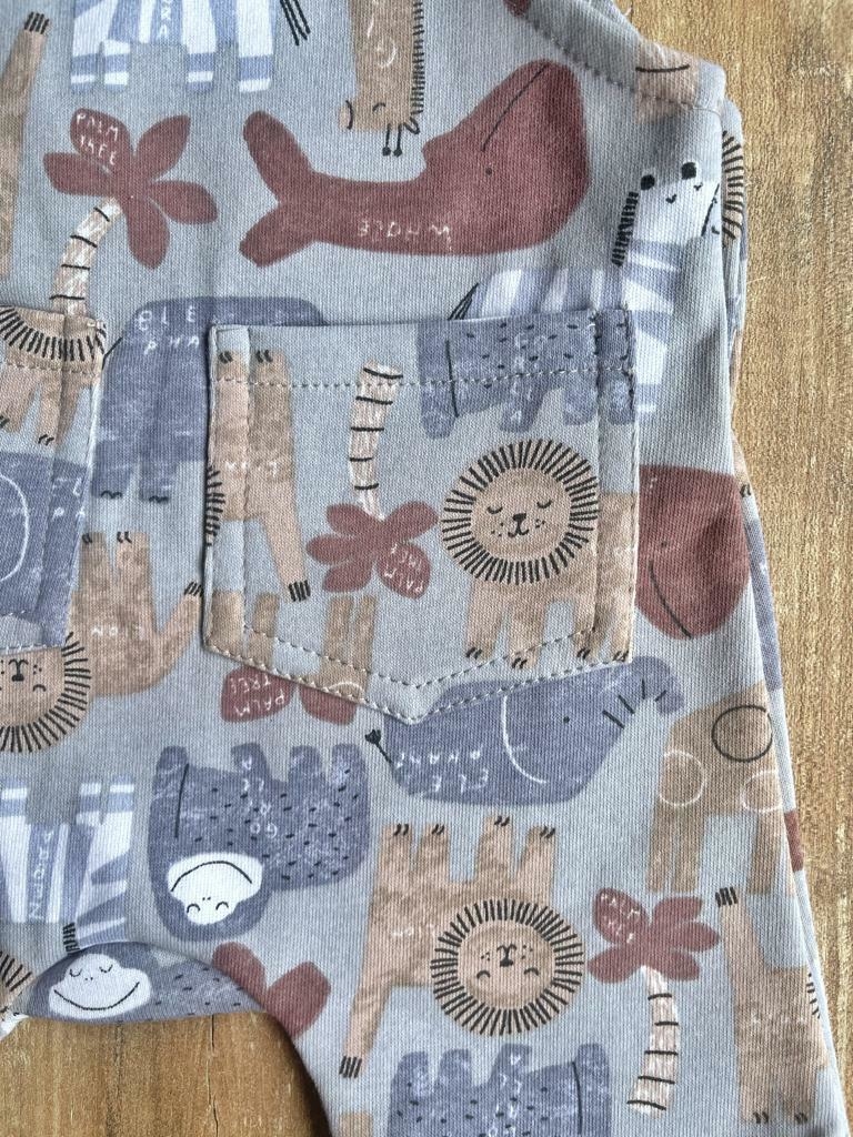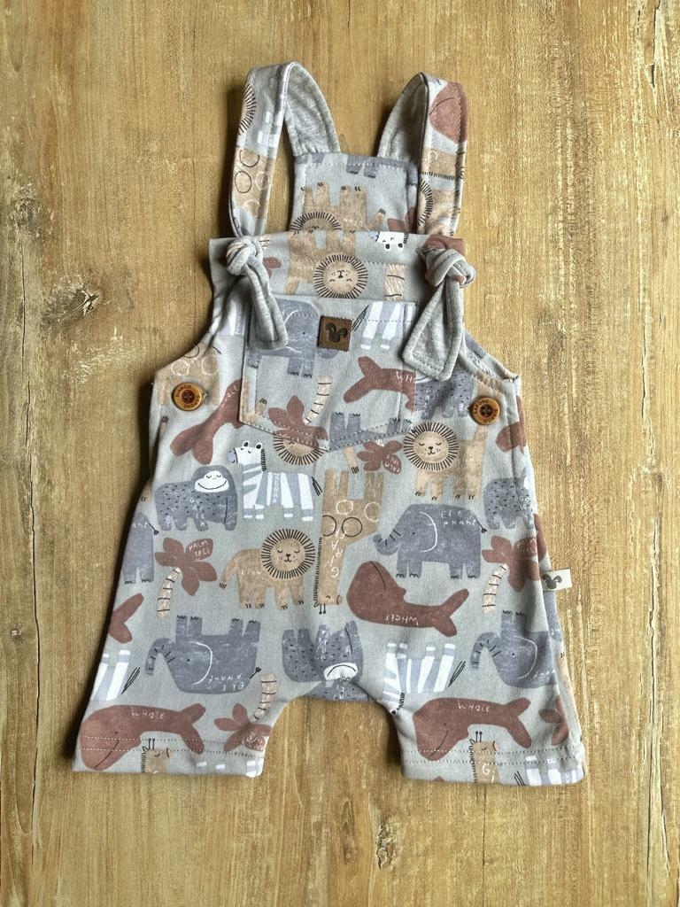 Jardinero rustico color gris con estampa animalitos, bolsillo delantero, super comodo