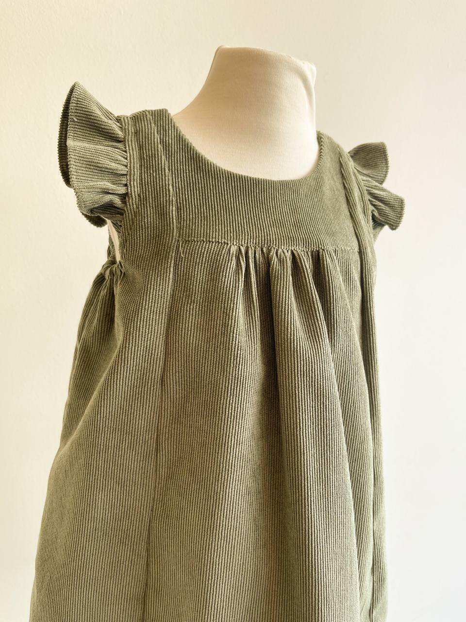 Vestido de corderoy en color verde, superlindo, ideal para combinar con medias cancan,