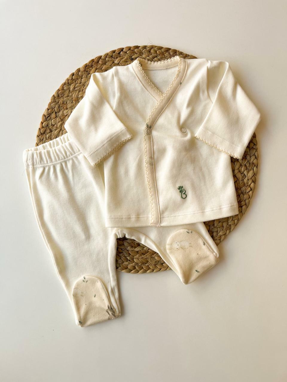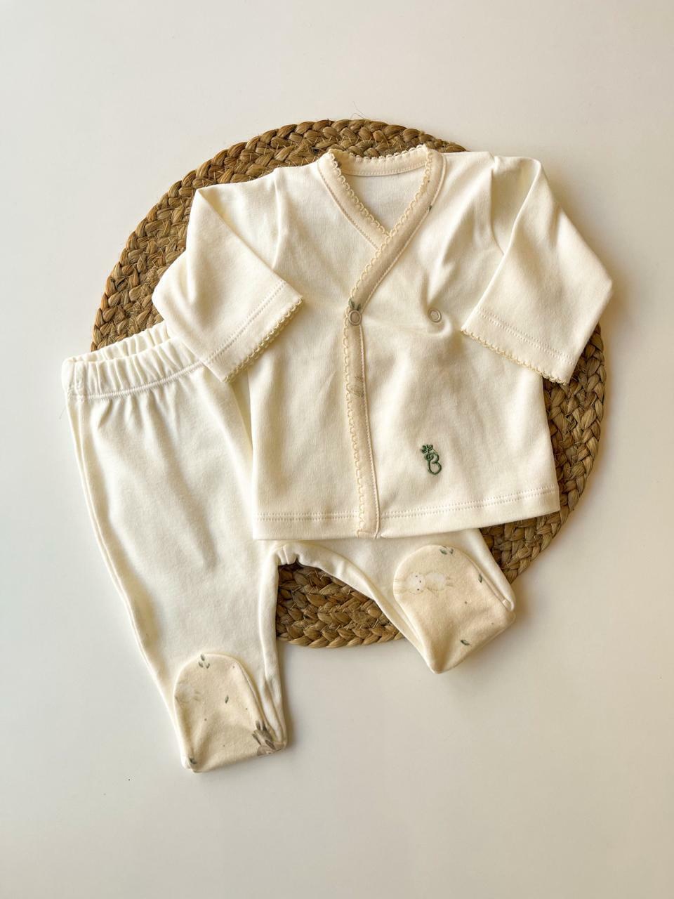 Set de 2 Piezas, de batita cruzado con ganchito y ranita , ideal para llevar a la clinica, de algodón, con detalle en picot, Podes combinarlos con el resto de la lina, Babita, gorrito, mitones, manta y Babero , arma el ajuar a tu medida