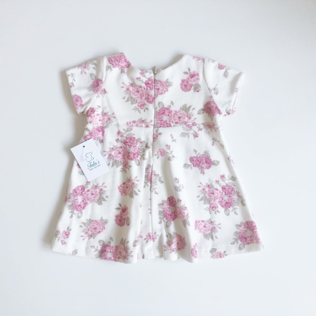 Vestido de Plush con estampa flores fondo natural con lazo, cierre en espalda, manga corta para usar con body basico abajo,